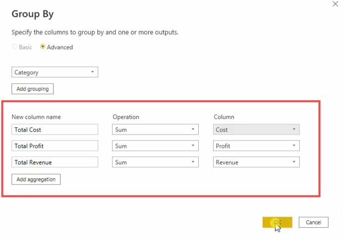 then choosing column that you would like to group after that applying the advanced feature to multiple aggregate data.