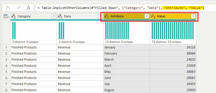 Here is the result after unpivot column the data itself will not change but only structure.
