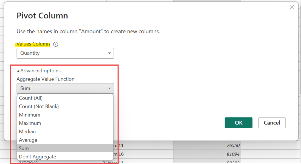 Another reshare data feature, to separate the subsequent data into column with aggregated function, it’s similar to pivot table in excel.