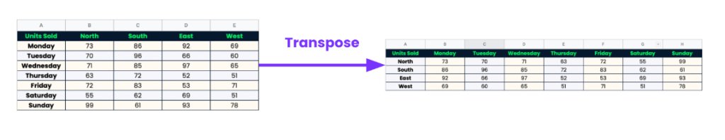 The easily feature for changing rows into columns and columns into rows.
