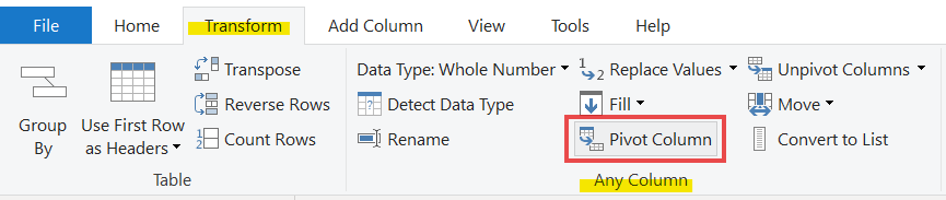 This is where to find the pivot column feature.