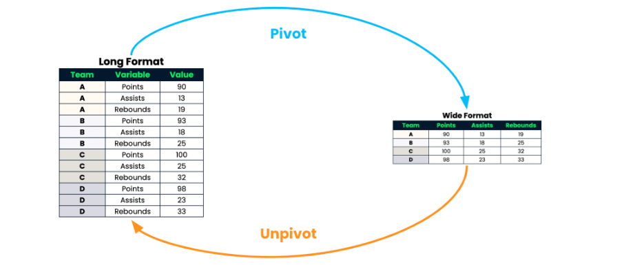 It will be transform long format to wide format or vice vasa.