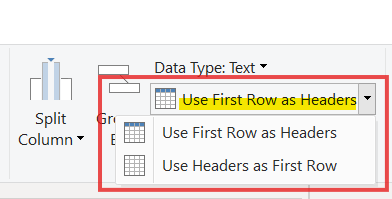 Home > transform session > drop down “Use First Row as Headers”