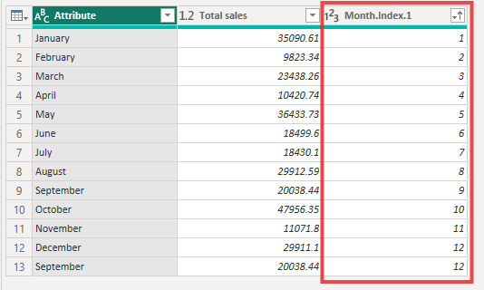 Sort month index column by ascending.