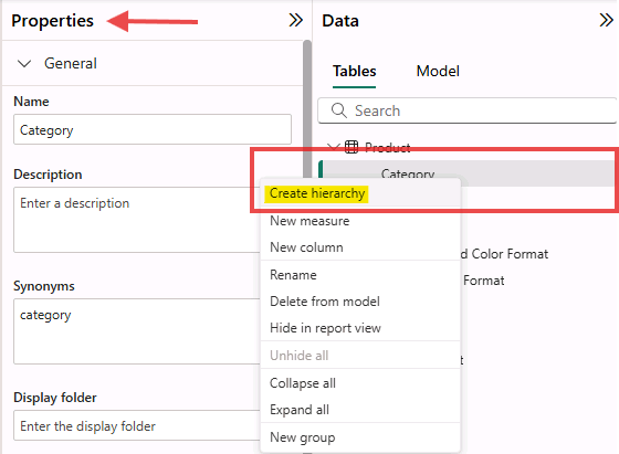 Right click > selecting “Create hierarchy”