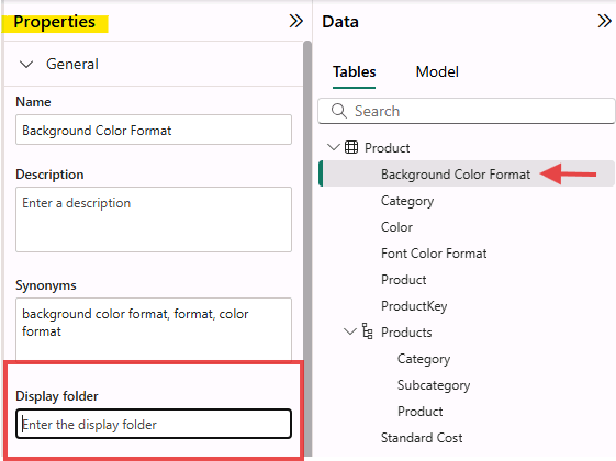 🧩 Organize columns into a display folder