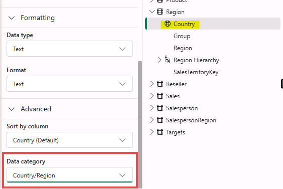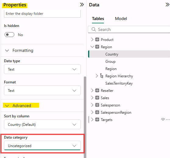 Going to properties pane. > Advance session > Data Category >
