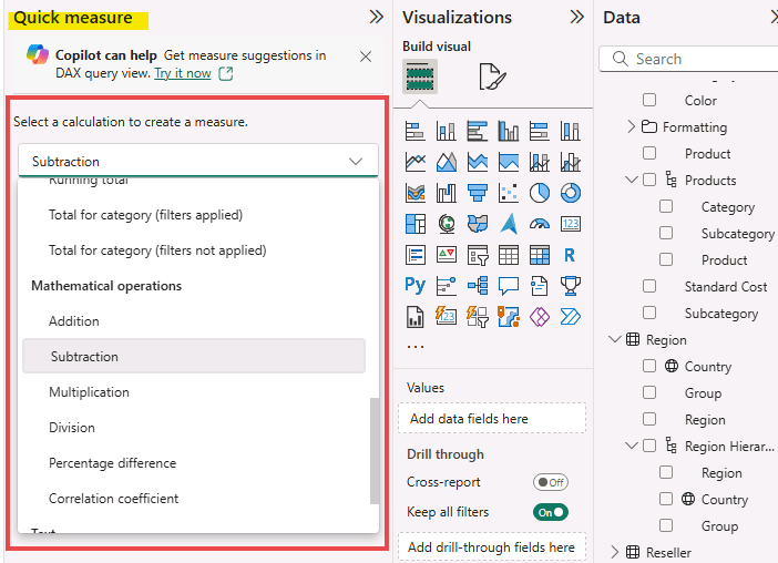 🧩 Create quick measure