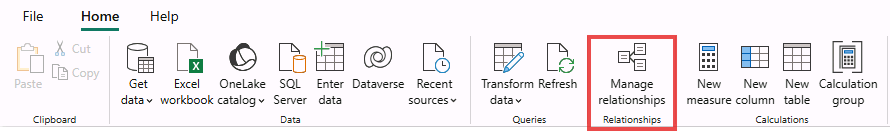 Selecting the “Model view” > Going to manage relationship on the ribbon tap.