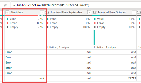 A column I’ve designated as a Date, but it found something it doesn’t recognize—like text, a blank space, or a date format that doesn’t match my regional settings (e.g., “31/13/2023” or “N/A”)