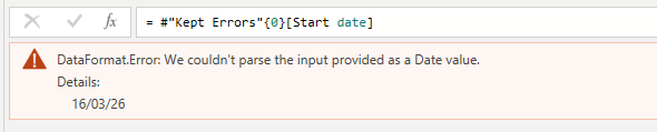 Then forcing Power Query to read the error date 16/03/26 correctly as Day/Month/Year, by using Table.TransformColumnTypes ( ) with the optional Culture argument or separate the date transformations.